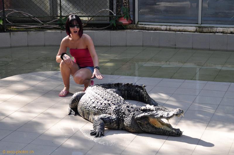 De plus, si vous êtes courageux, vous avez la possibilté de vous faire photographier dans le parc de crocodiles à la fin de leur shows.