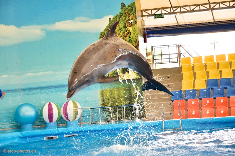 Excellent spectacle de 2 otaries en première partie, puis de 5 dauphins qui jouent à propulser en l'air leurs entraineurs. Les gradins sont classés en 3 catégories, celle du milieu est suffisante pour bien apprécié sans se faire trop gicler. Horaire des shows: 11:00 - 14:00 - 17:00. Lundi fermé.